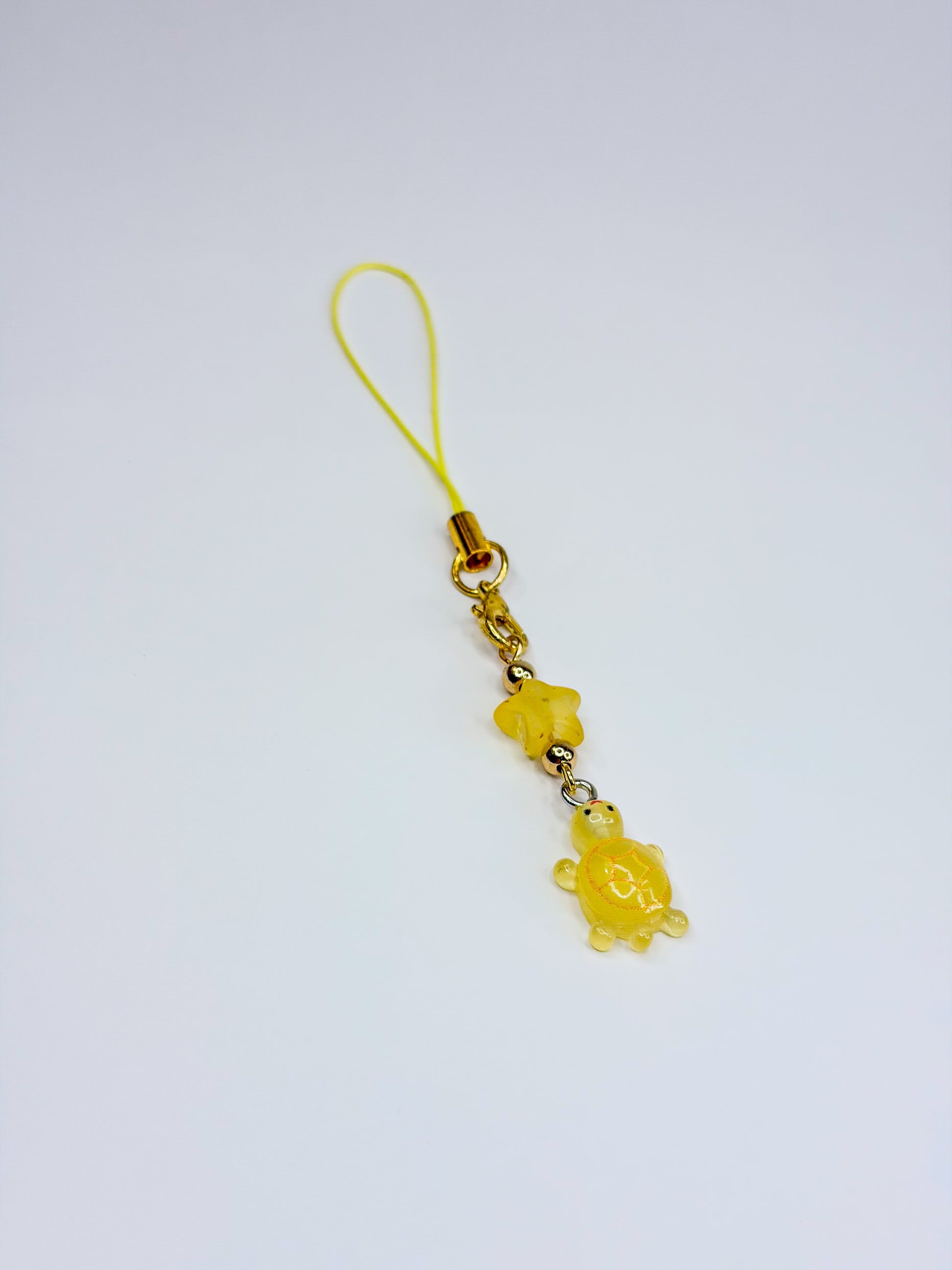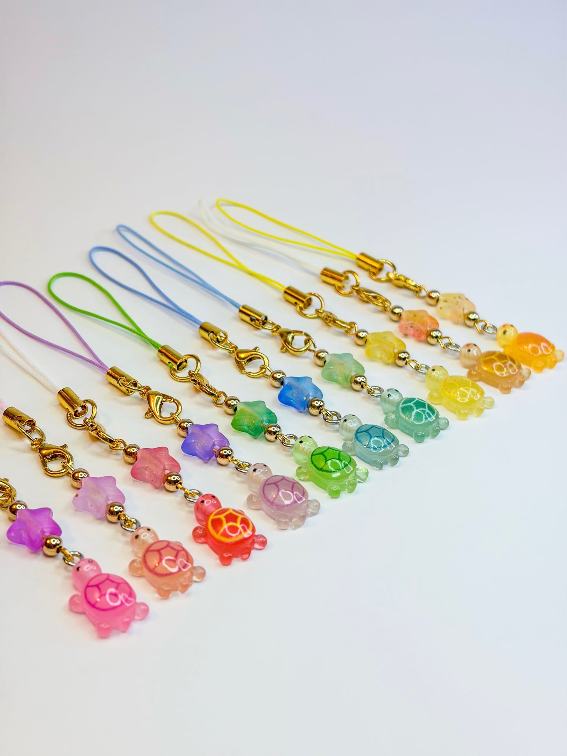 Chaque pochette surprise renferme un adorable phone charm tortue porte-bonheur, qui sâillumine dans le noir, accompagnĂ© dâune perle Ă©toile en verre assortie Ă sa couleur.